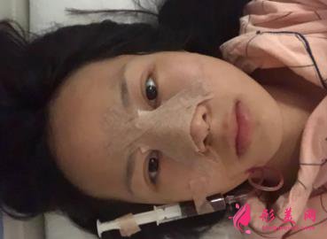 這是我隆鼻后剛回病房休息時(shí)拍的照片??噹Ш芫o,鼻子腫了。具體效果還沒有出現(xiàn)。去掉膠帶后看下圖。