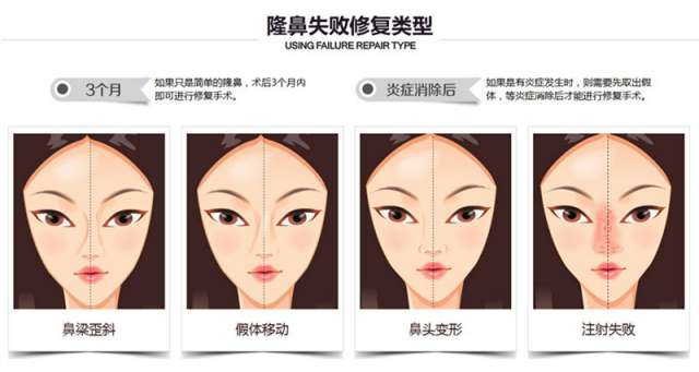 隨著整形美容的發(fā)展,隆鼻成為了拯救塌鼻子的方案,受到廣大愛美人士的青睞。然而萬千成功的隆鼻手術(shù)中也不乏有失敗和對術(shù)后效果不滿意的案例,其中,造成隆鼻失敗的原因主要包括注射不合格材料、術(shù)后嚴重的排異反應(yīng)、假體穿出、鼻假體輪廓顯露等等;而對于術(shù)后效果不滿意的求美者來說,如有需求也可以將填充材料取出或重新植入??傊?,不成功的隆鼻手術(shù)不僅打擊了求美者的自信心,更隨之帶來了極大的痛苦。