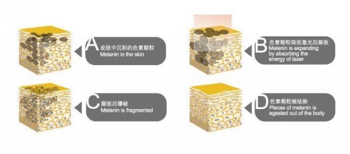 激光祛除色素沉著利用了光熱效應,利用了本身強大的瞬間功率,集中輻射的能量,有選擇的對色素顆粒產(chǎn)生作用。然后通過人體的循環(huán),排到體外,不會影響到正常的皮膚組織,激光去色素非常的確切。